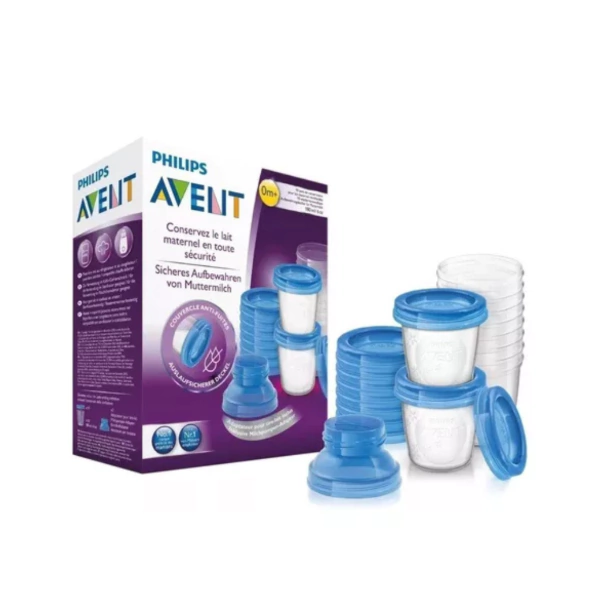 • Los vasos de almacenamiento Philips Avent tienen una tapa que crea un sello firme para trasladarlos y guardarlos de forma segura.