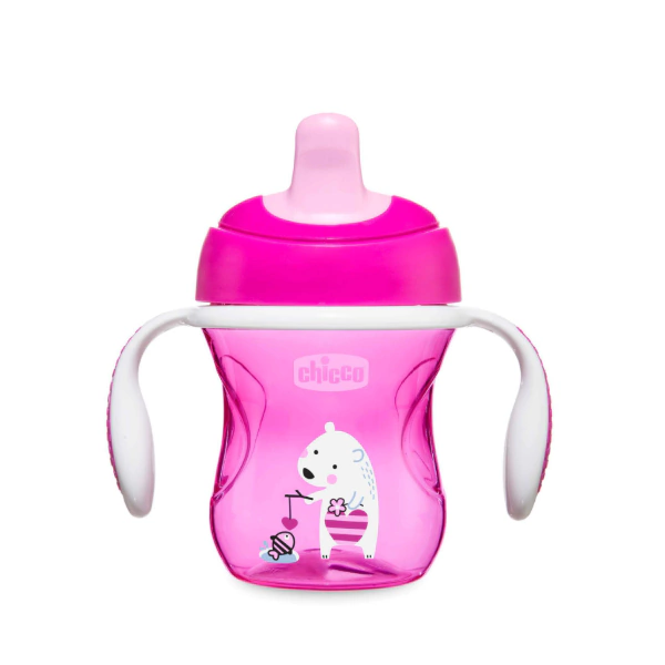 • Pico ergonómico, semi suave, resistente a las mordidas. Boquilla con forma para facilitar una correcta colocación de los labios y descentralizada para promover una postura correcta del cuello mientras bebe.