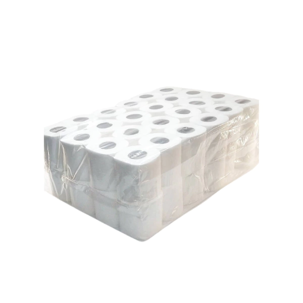 • Pack de 48 rollos de papel higiénico New Pel de 30 metros cada uno, simple hoja, con precorte, blanco y suave. El ancho de la hoja es de 10 centímetros.