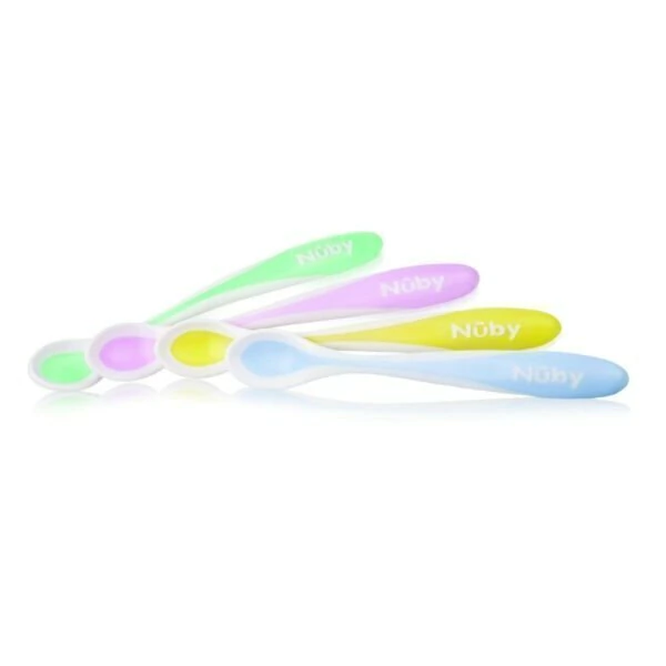 • Las cucharas con borde blando de Nûby™ son la mejor solución para darles de comer alimentos de consistencia sólida a tus hijos. No solo son suaves para el paladar, sino que también te ayudan indicándote si la comida es demasiado caliente para el bebé.