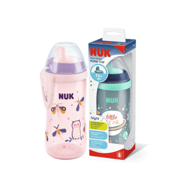 - Al igual que con todos los vasos NUK, el Vaso NUK Kiddy Cup con Efecto Luminoso también es a prueba de derrames, por lo que todo en la cama se mantiene cómodo y seco. Y, por supuesto: vienen en adorables colores con lindos motivos, diseñados específicamente para la hora de dormir de ensueño.
